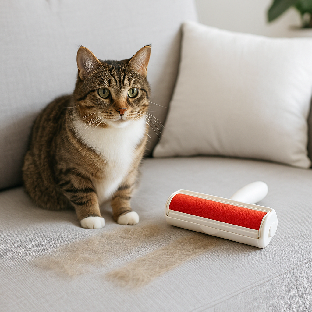 Remove pet hair from couches, beds, clothes, and car seats in seconds with HairZero™ — the reusable 2-in-1 roller that actually works.